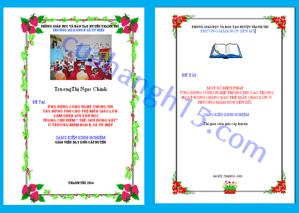 Chính bởi tầm quan trọng như vậy nên tất cả những ai viết sáng kiến kinh nghiệm, đặc biệt là các cô giáo mầm non. Do đặc thù cấp mầm non mà bìa sáng kiến kinh nghiệm ở cấp học này luôn được chú trọng vào vấn đề trang trí xung quanh.