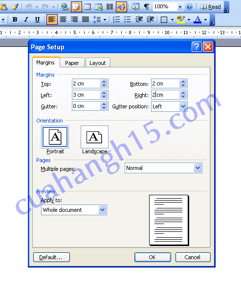 - Sau khi chuyển sang đơn vị cm. Tiếp theo bạn vào mục căn nề cho trang văn bản.