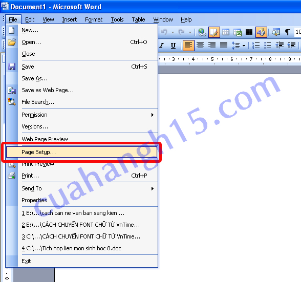 - Vào File => Page Setup/ Chọn Tab Margins, điền các thông số như sau