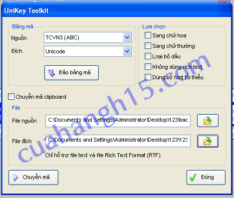 + Bảng mã đích bạn chọn là Unicode để chuyển thành văn bản có mã là Times New Roman.